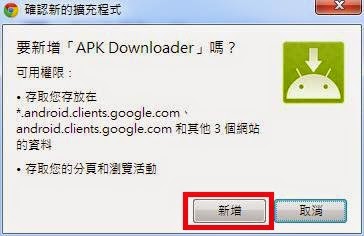 4.Chrome會詢問是否確定安裝,按下[新增]確定安裝